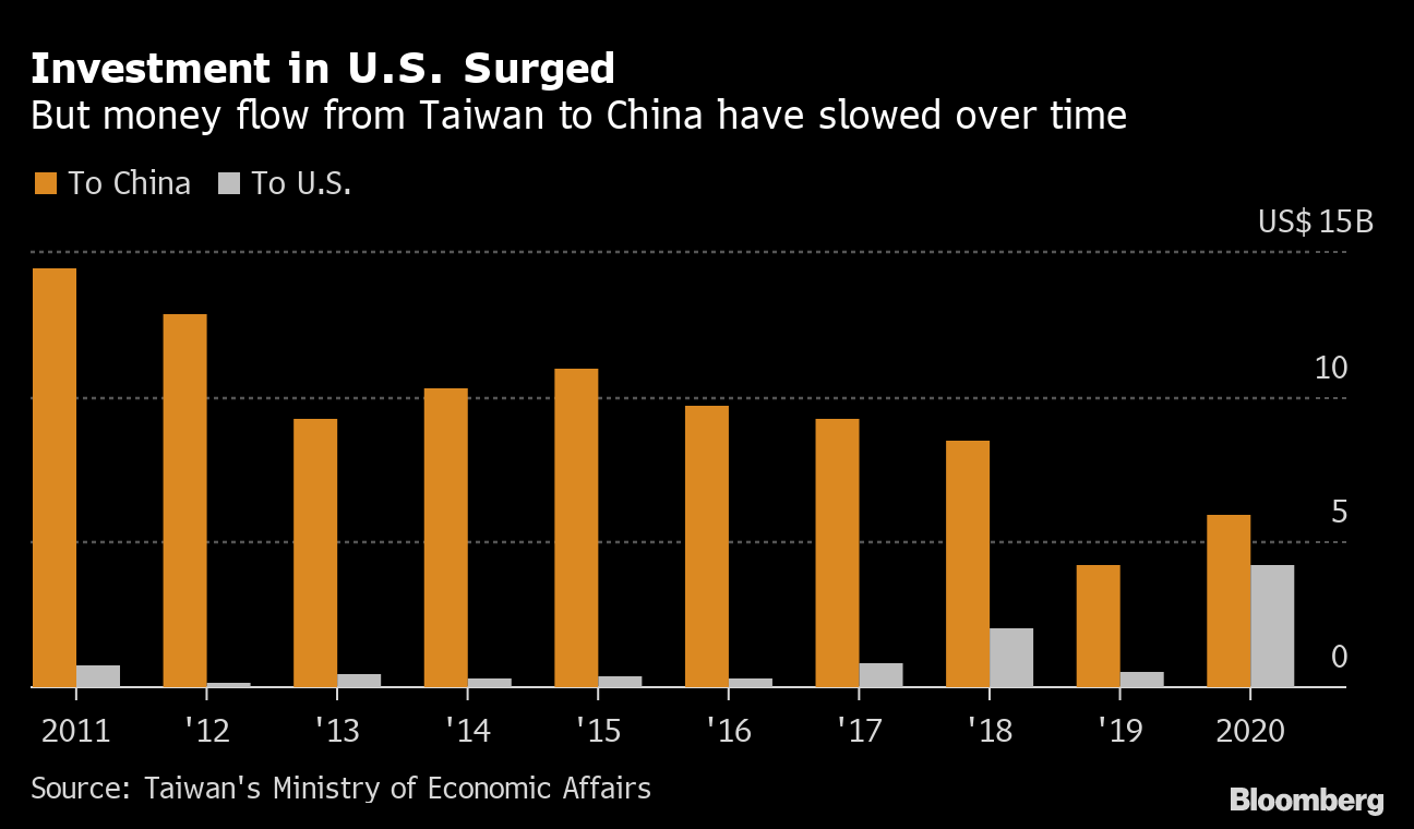 Taiwanese investment in the U.S. has risen significantly since Trump first imposed tougher import duties on Chinese-made goods as part of his effort to reverse the U.S. trade deficit with China. The upturn has coincided with a steady slowdown in Taiwanese investment in China over the past decade.