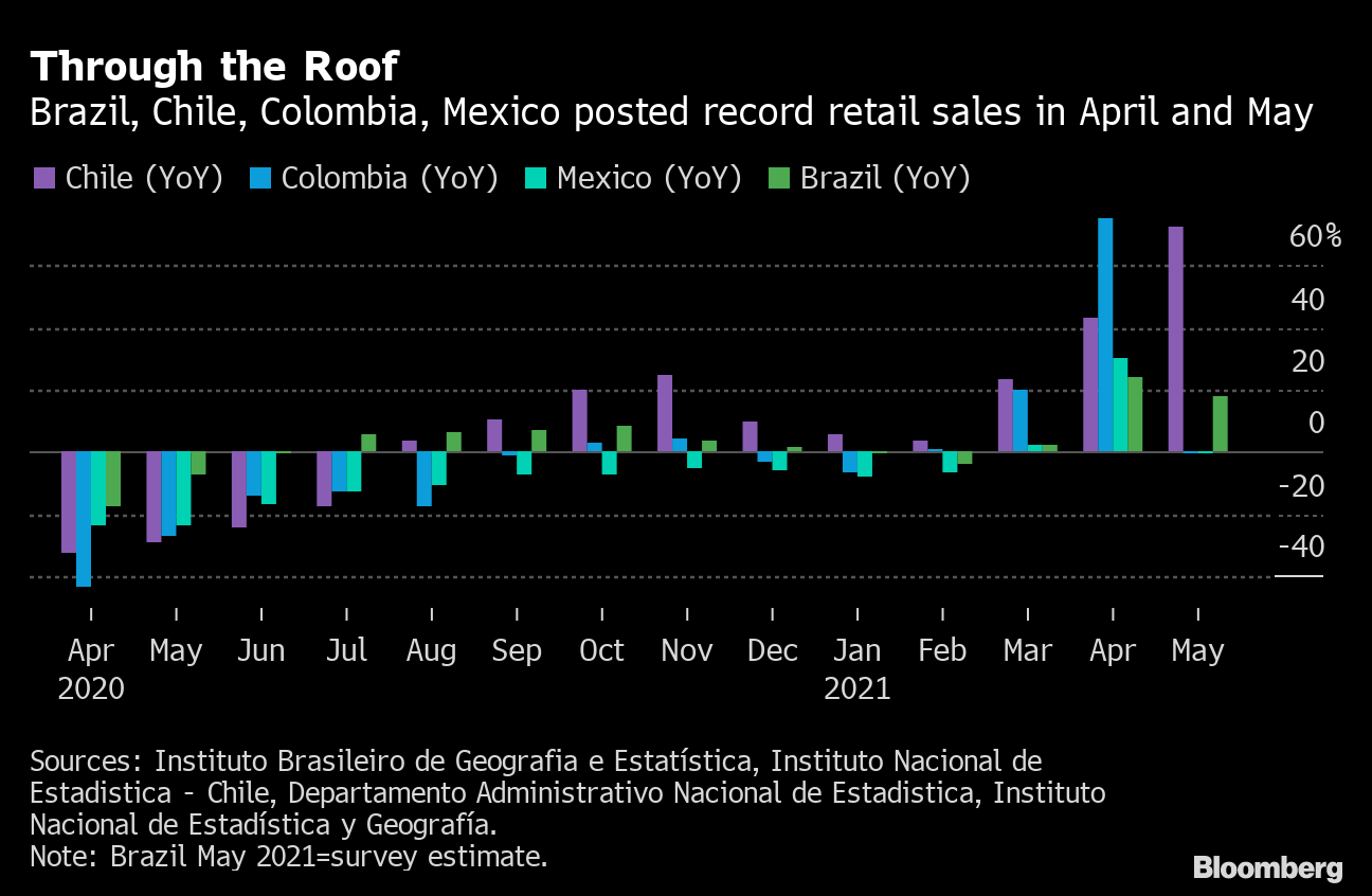 Brazil, Chile, Colombia, Mexico posted record retail sales in April and May
