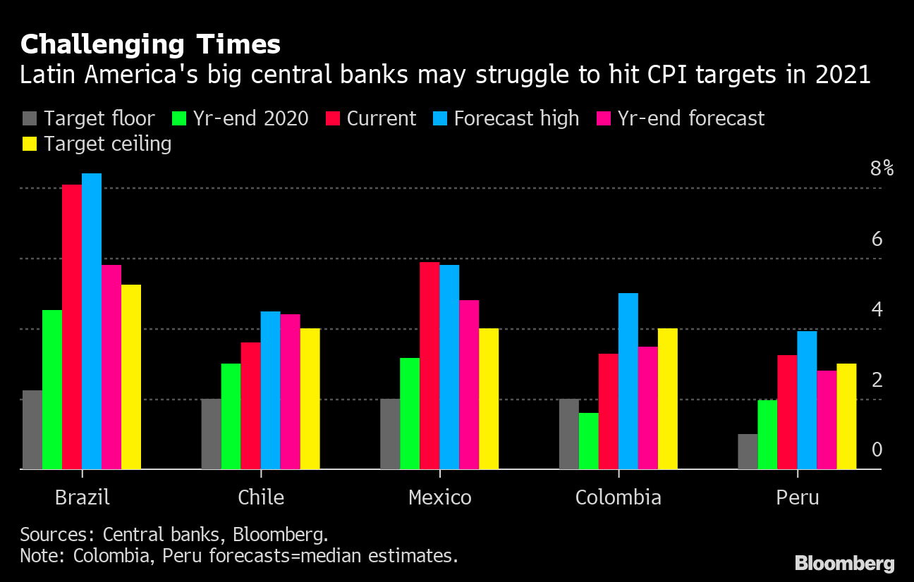 Latin America's big central banks may struggle to hit CPI targets in 2021