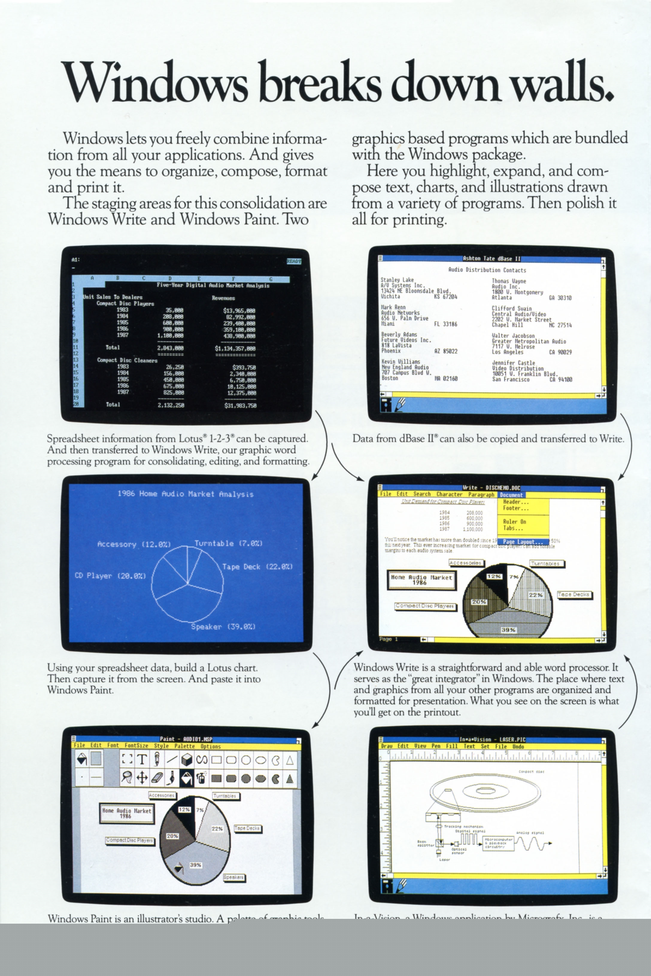 事实上,Windows 1.0并未获得广泛认可,因为当时的市场更青睐GEM、DESQview/X等图形平台,但开启了从命令行向图形界面的全面进化。