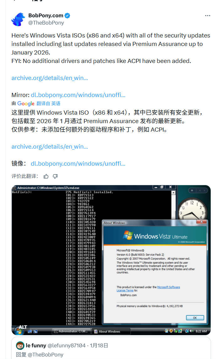 而Bob Pony镜像中包含的2026年1月Vista更新,仅面向参与微软高级保障计划的付费客户,并非面向普通用户的公共更新。这意味着,即便安装了该镜像,普通用户未来若遭遇新的安全漏洞,仍无法获得微软官方修复,设备连接互联网时将面临严重的黑客攻击风险。