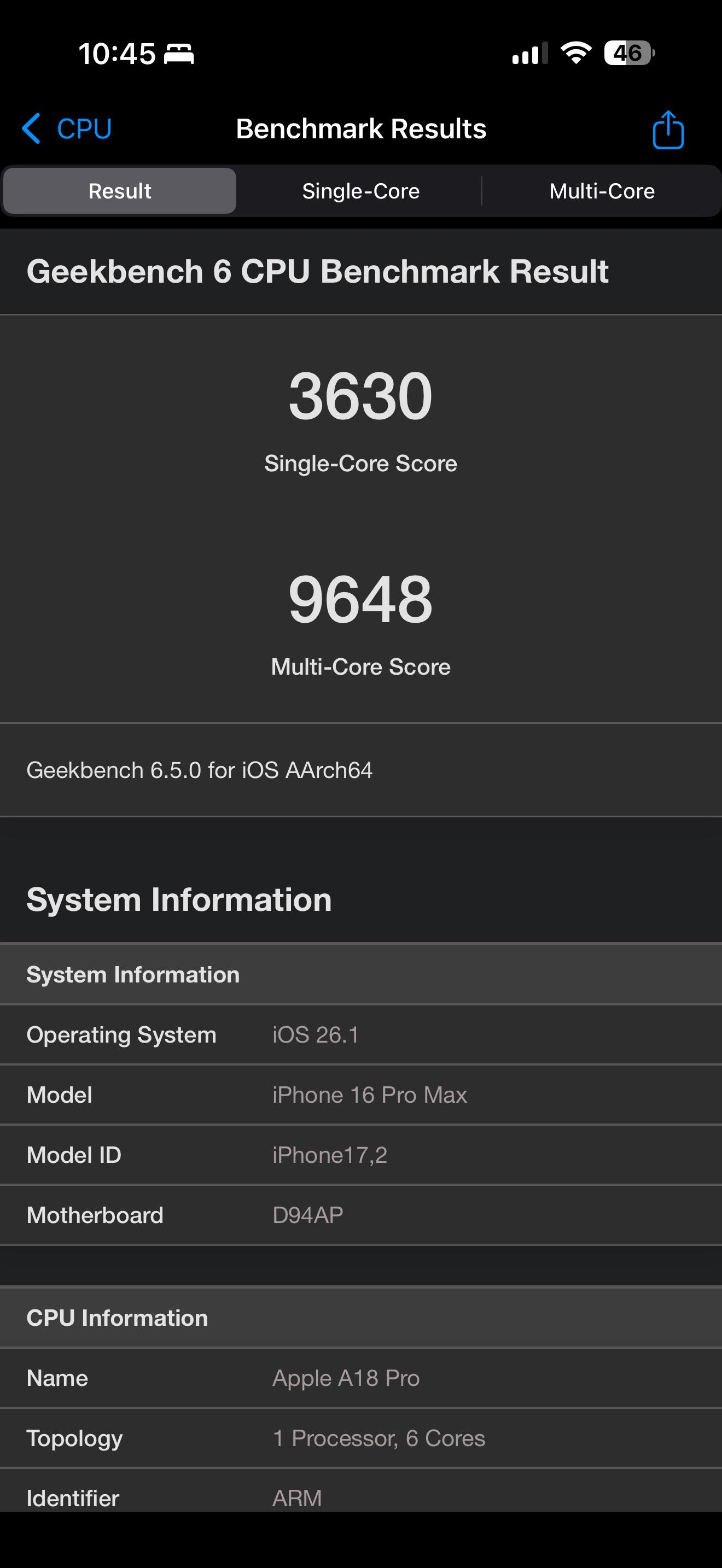 而搭载A19 Pro芯片的iPhone Air,通过内置散热,跑分结果为:单核得分达到3687,多核得分为9390分,单核 A19 Pro 仅领先 57 分,多核反而被上代 A18 Pro 反超 258 分。