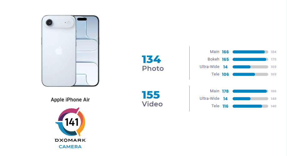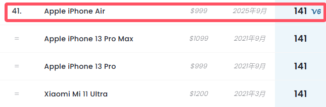 DXO表示,iPhone Air在相机测试中表现亮眼,尽管仅配备一颗后置摄像头,但其性能与iPhone 17 Pro主摄非常接近,能够拍出明亮、细节出色的高质量照片。