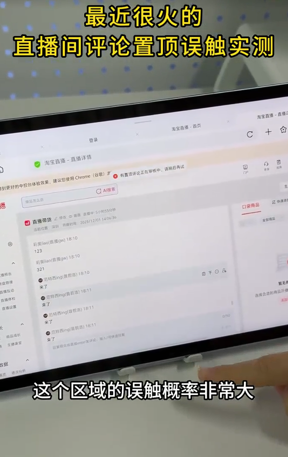 就在大家半信半疑的时候,有网友专门拍了段实操视频,用和vivo直播间同款的直播后台演示,稍微快点或者手滑,真的很容易误触到旁边的置顶按钮。