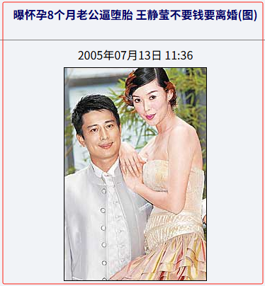 王静莹似乎得到了大家的鼓励,公开强调,一毛钱都不要,只要求离婚,并指出自己怀孕八个月时,就被富豪老公发脾气要求堕胎。