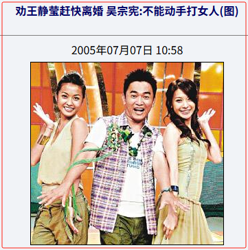首先,“综艺大哥”吴宗宪率先支持王静莹,说“女人啊!你可以不爱她,也可以不理她,对方再怎么不对,就是绝对不能够打她,我劝王静莹还是赶快离婚好了,以免再度受到伤害!”