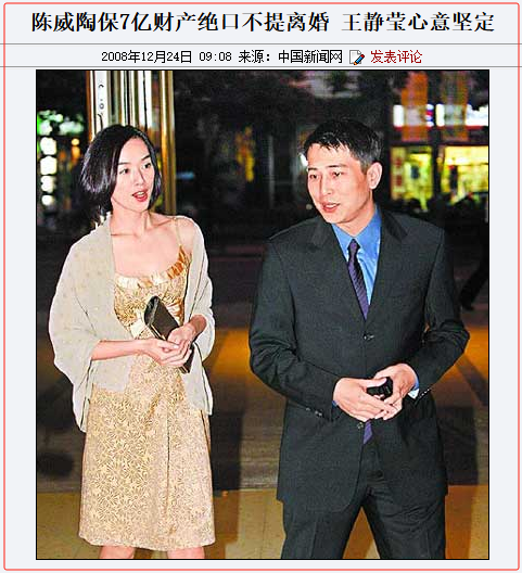 但事已至此,陈威陶坚决不离婚,说为了保住自己七亿的财产不被分走,死都不肯放手。