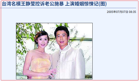 经此种种,王静莹在业内的名声越来越差,直到2004年,33岁的她才终于寻觅到一位真正的富商,正是南港轮胎董事、曾获过东南亚射击赛不定向飞靶冠军的陈威陶。