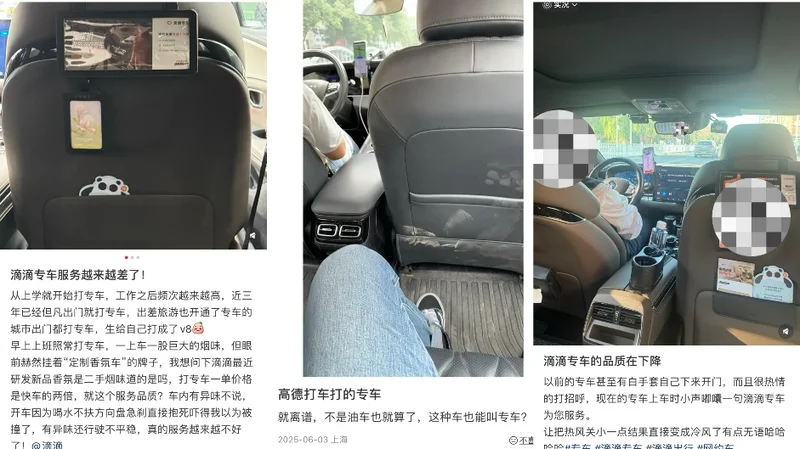 “印象里,一开始的专车是香香的,司机是走心问候的,下车会回头检查矿泉水补给喝后座有无遗漏物品的,今年(2025年)以来打到的专车逐渐……要不就是一股网吧/厕所味,问候语小声对着手机快速读一遍达成任务,一张嘴陈年烟味萦绕整个车厢。”有网友在社交平台发布笔记表示,“多花20-50%的出行成本,本来是为了不开盲盒享受一个相对稳定的乘车环境,怎么反倒成了受罪。”