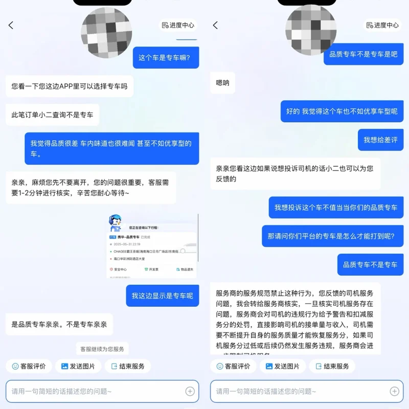 另有网友则针对“高德品质专车品质很差”的问题询问了平台客服,得到的回复却像一场文字游戏,“是品质专车,不是专车”。