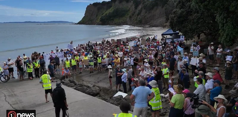 周六,奥克兰北边Whangaparāoa半岛发生一场大规模民众抗议,对近年来的“过度赶海”现象集中声讨。