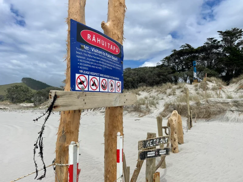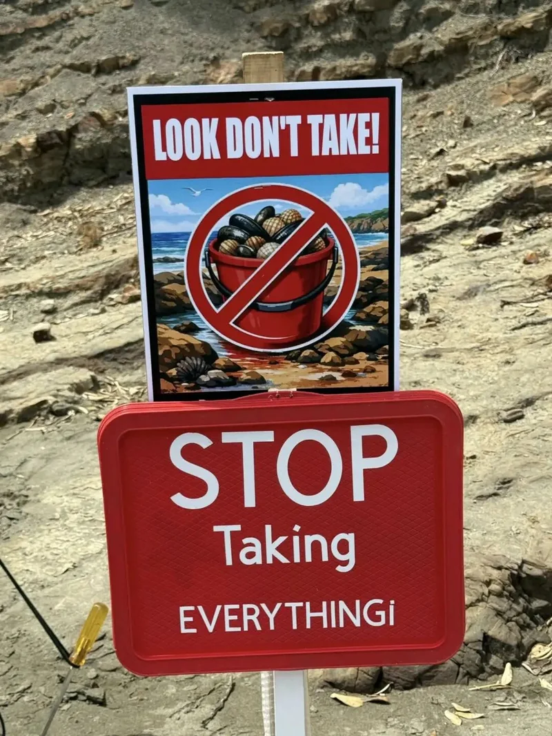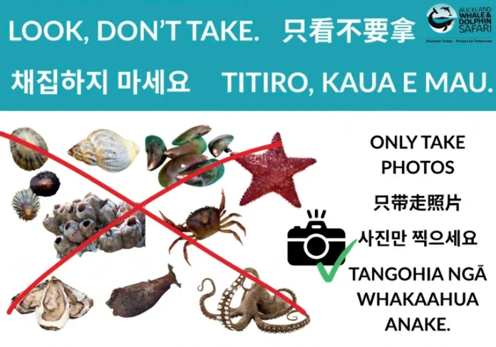 Whangaparāoa四周也立起了4种语言的标语:“只带走照片(不带走海鲜)”