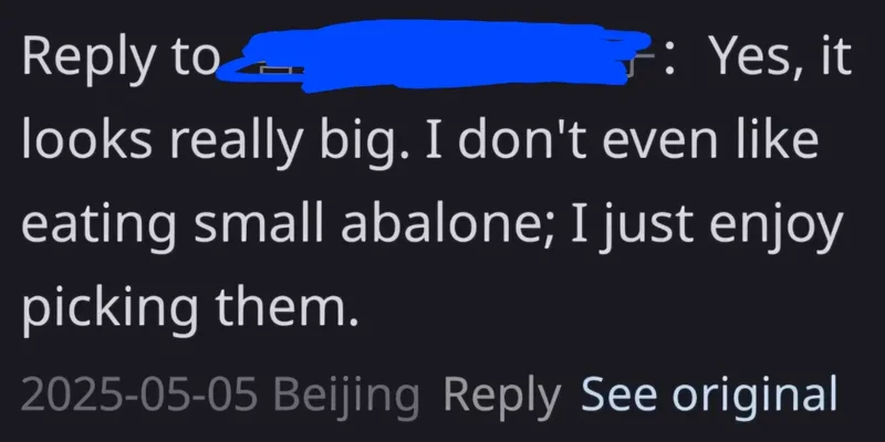 小红书上有人表示,“我不爱吃鲍鱼,我只是喜欢去捕捞。”