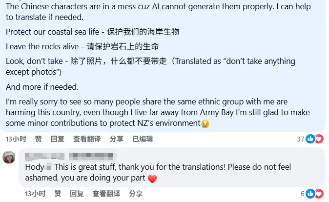 但也有很多人已经行动起来,证明华人也在积极保护新西兰海洋生态,呼吁大家停止赶海及相关营销。