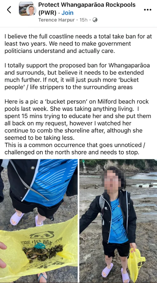 02“‘华人’爱赶海跟小红书有关!”昨天在Facebook上,“保护Whangaparāoa岩池”的群组有人发了一篇长文,详细阐述了新西兰赶海是如何在中文社交平台上被宣传的。
