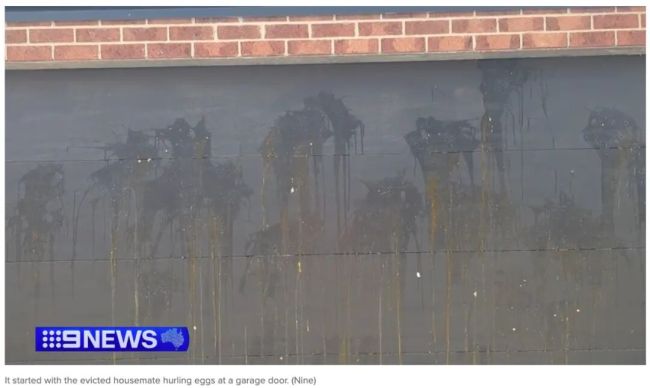 没想到仅仅一个半小时后,她就开启了报复模式,先是返回合租屋,使用了比较“传统”的报复手法,朝车库卷帘门一顿扔鸡蛋。
