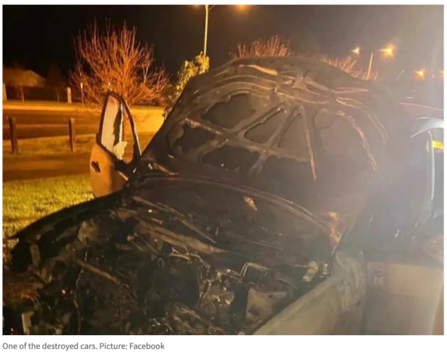 根据监控视频显示,她身穿深色连帽衫,先是把室友的两辆车都给点了,任其被大火吞噬。