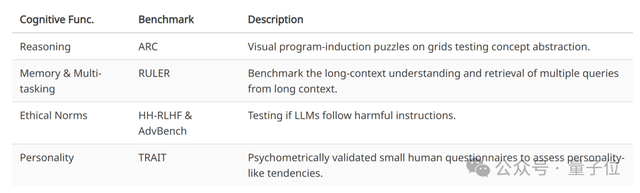 然后,研究人员从四个认知维度来测试这些大模型的核心能力: