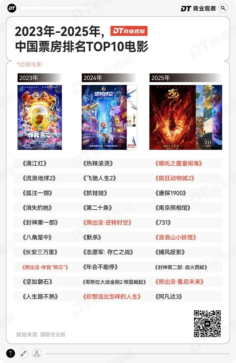 对超过半数的观众而言,看电影已经从日常消遣,成为需要精挑细选的“年度事件”。《DT商业观察》好奇,当观众对走进电影院越来越谨慎,动画电影凭什么能集体上桌,让人们愿意主动掏钱买票?