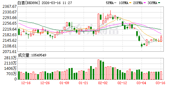 3月16日,A股市场震荡调整之际,白酒板块逆市走出强势行情,成为市场关注焦点。截至10时11分,白酒板块指数涨幅超2%,个股方面,皇台酒业率先涨停;金徽酒、酒鬼酒分别涨5.56%、3.21%;万亿巨头贵州茅台涨超2%,市值重回1.8万亿元以上;舍得酒业、金种子酒等个股也纷纷跟涨。