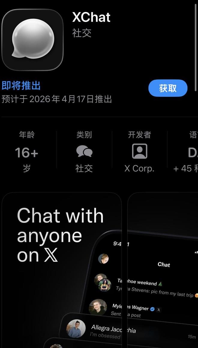 值得关注的是,XChat支持简体中文,中国大陆区App Store同样可通过直达链接预约下载。该应用要求设备升级至iOS/iPadOS 26.0以上,安卓版本预计后续推出。