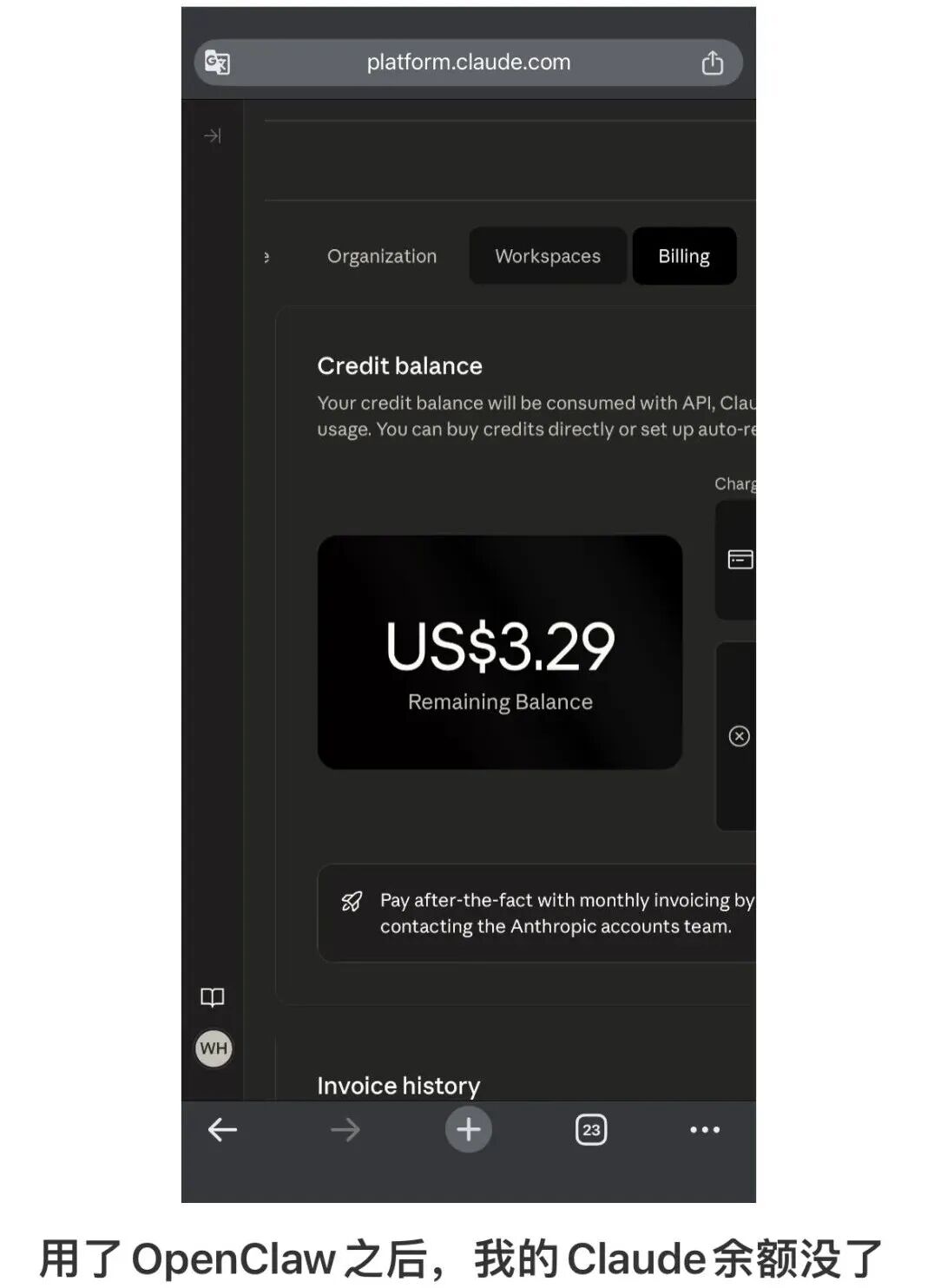 有网友觉得 OpenClaw 好玩就装上了,然后 Claude 余额就开始以一种优雅的姿态…… 消失。