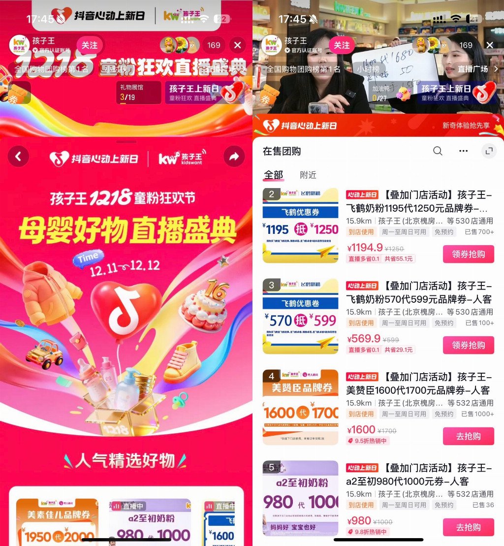 数字世界带来了前所未有的选择自由与购物便捷,然而,线下专业顾问的贴心指导、商品切实的触感体验,始终是建立深度信赖关系中无法被替代的一环。敏锐洞察到“线上决策、线下体验”这一融合趋势,中国母婴童行业领袖品牌孩子王,在其沉淀了十五年情感连接的年度盛典——“1218童粉狂欢节”期间,与致力于打造线上线下融合消费体验的「抖音心动上新日」强强联合,共同打造了一场线上线下深度融合的宠粉盛宴。