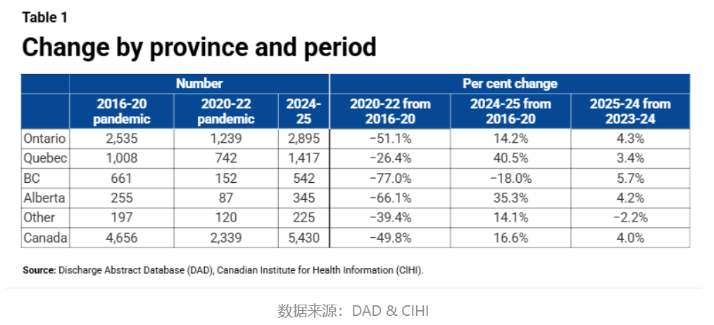 报告称,所谓的“非居民自费分娩”——这是加拿大健康信息研究所(CIHI)使用的术语,指临时居民或访客在加拿大生孩子、并自行承担医院费用的情况——在2024年已恢复到疫情前的水平。