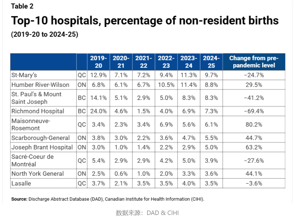 此外,安大略省的有4所医院排在前10,全部位于大多伦多地区,它们的非居民新生儿占比均已远远超过疫情之前的水平。