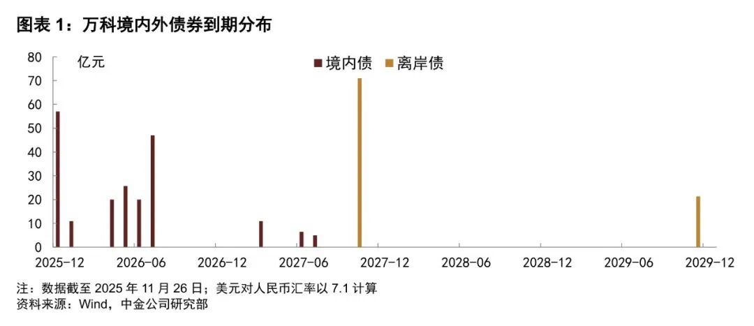 万科后续债券到期量仍较大,2025年12月至2026年7月,除2-3月外,万科几乎每个月都有债券到期,本金合计值180.66亿元,面临债券集中兑付期。