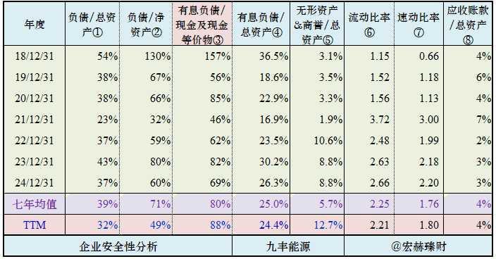 结合公司业务和商业模式,分别从七年均值和去年末值来观察该公司的资产安全性和资金流动性。