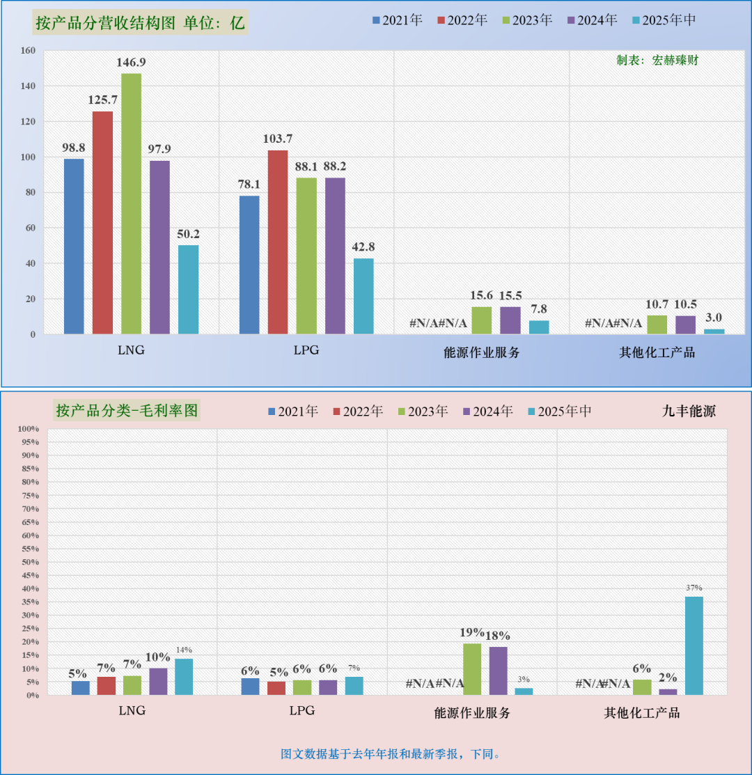 第一业务LNG 营收97.9亿,权重为44%,近三年(2022-2024)同比增幅分别为:27%、17%、-33%;毛利率10%。