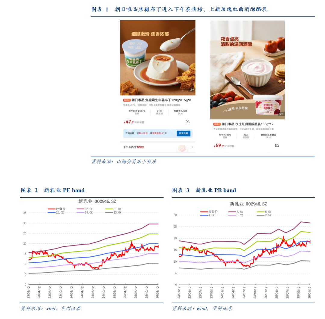 山姆上新再出爆款、体系创新能力充分验证。2025年12月底唯品新品“玫瑰红曲酒酿酪乳”在山姆上新,上市后销售火爆,预计1月月销即可超千万。25年公司相继推出5款产品成功入驻山姆,其中芭乐酸奶6个月销售破亿、月销超过2000万,焦糖布丁上线即断货,常温奶夏进爵品月销亦有千万级别,而玫瑰酒酿再成爆款,公司体系化创新能力充分验证。