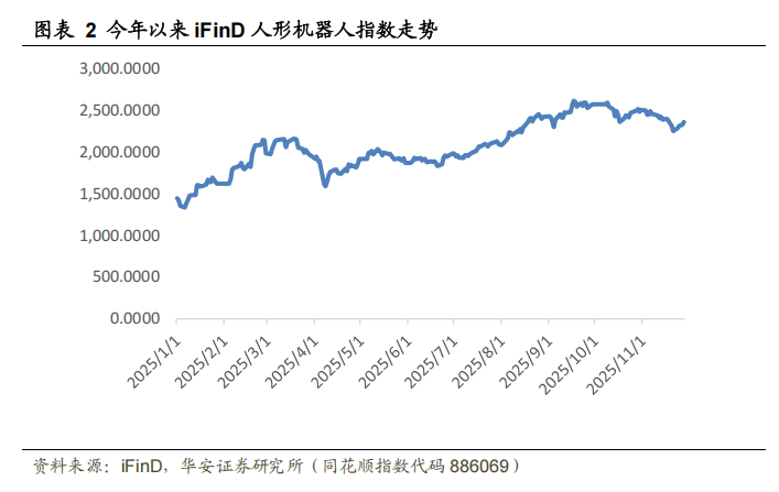 根据同花顺iFinD数据显示,年初以来人形机器人板块整体走势呈现上升趋势,四季度以来板块呈现小幅回调,主要原因或为人形机器人下游应用场景拓宽不及市场预期,但我们认为随着人形机器人产业的不断拓宽,人形机器人有望形成劳动力替代尤其在高危作业环境有望取得优先突破。