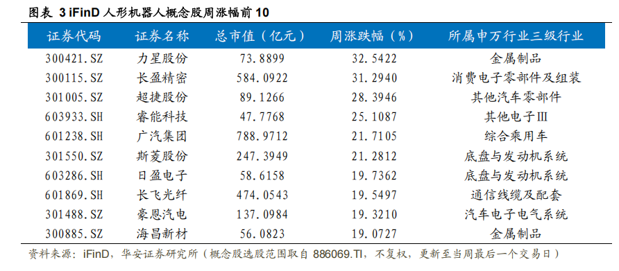 根据同花顺iFinD数据显示,本周(20251124至20251128)人形机器人个股表现有所分化,其中iFinD人形机器人概念股涨幅前5的公司分别为力星股份、长盈精密、超捷股份、睿能科技以及广汽集团;跌幅前5的公司分别为华达科技、润和软件、江特电机、同惠电子以及利和兴。