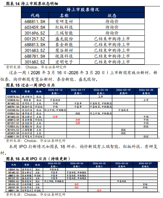 本报告摘自华安证券2026年3月25日已发布的《【华安证券·金融工程】金工周报:B类打新账户数近期上行》,具体分析内容请详见报告。若因对报告的摘编等产生歧义,应以报告发布当日的完整内容为准。