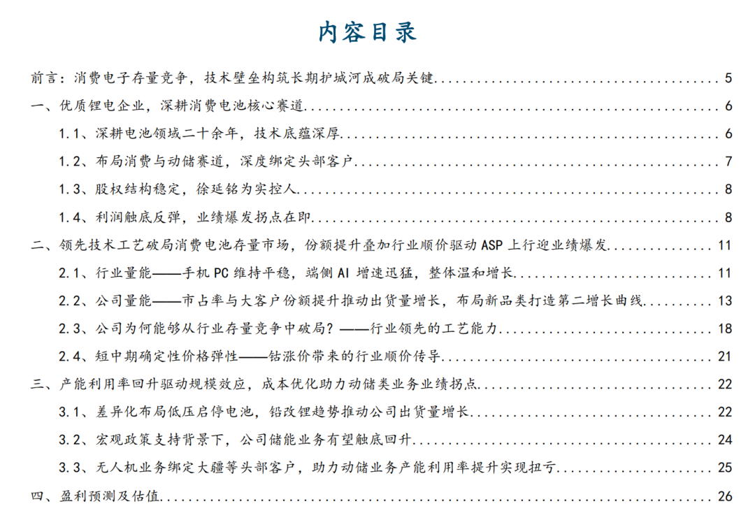 积极布局前沿制造工艺,技术能力依托市场份额与ASP兑现。公司积极研发钢壳电池,能够更高效利用设备内部空间,提升电池带电量,有望向更多机型渗透;叠片工艺提升模切精度与叠片精度,使整体成本降幅达10%以上;硅负极电池能量密度更高,公司已量产出货25%高硅负极电池,未来有望持续提升掺硅比例,公司电池工艺的进步将反映到其市场份额与ASP的提升上。