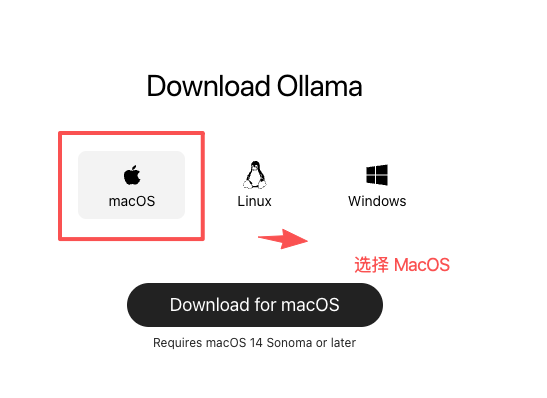 进入 Ollama 官网 ,我的电脑是 Mac Studio ,所以选择 MacOS 下载 。