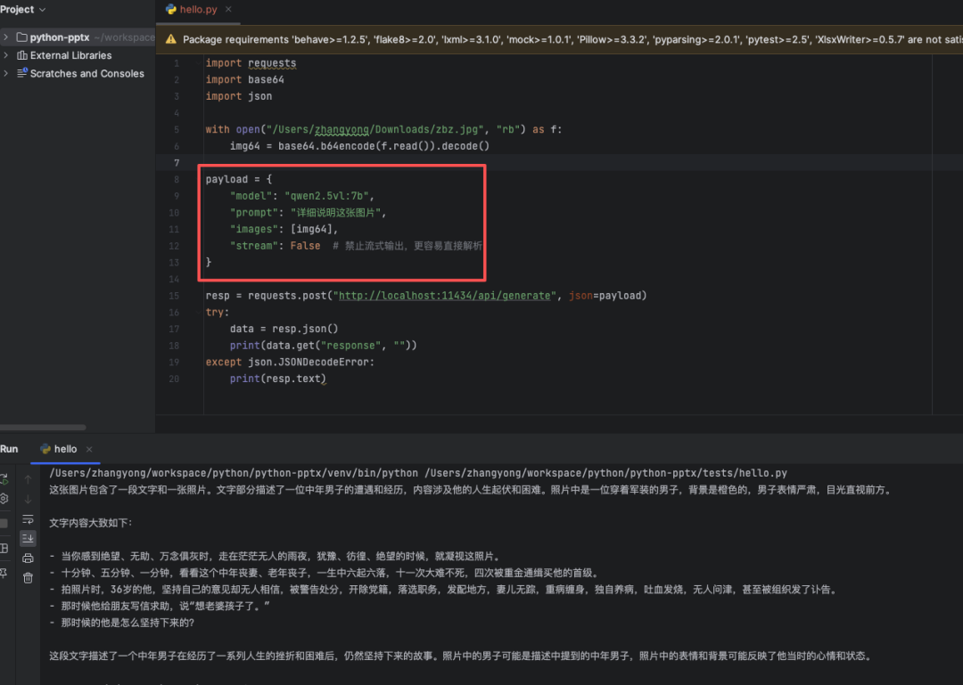 我们可以编写 python 调用 Ollama 接口,实现模型分析图片: