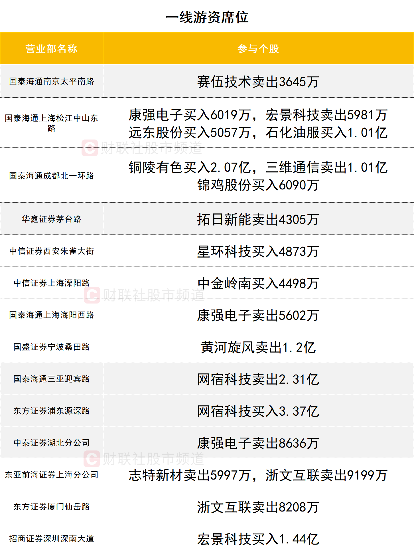 一线游资活跃度较高,网宿科技今日冲板回落,获一家游资(东方证券上海源深路)买入3.37亿,同时遭一家一线游资(国泰海通证券三亚迎宾路)卖出2.31亿。三维通信遭一家一线游资(国泰海通证券成都北一环路)卖出1.01亿。