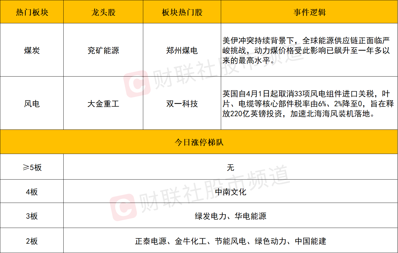 板块上,煤炭板块全天强势,郑州煤电、兖矿能源、陕西黑猫等涨停,晋控煤业、潞安环能、宝泰隆等涨幅居前。