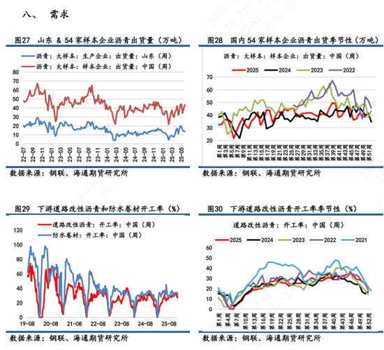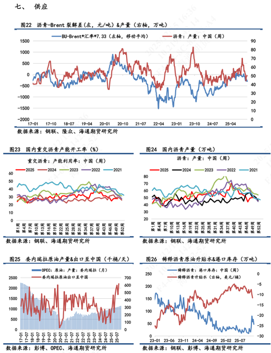 【2】现货市场:①山东重交沥青市场价为2920元/吨,环比回落0.3%,7天累计-0.7%。山东基差为-43元/吨,7天累计-31元/吨。②华东重交沥青市场价为3150元/吨,环比+0%。华东基差为187元/吨,7天累计-41元/吨。