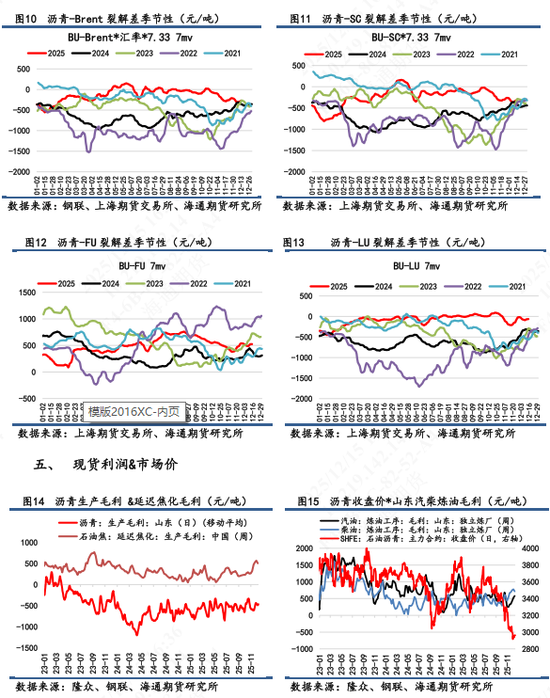 【4】基本面变化:最新的沥青产销周度数据表现一般,稀释沥青贴水虽有收窄,但贴水幅度仍旧有12美元/桶水平。市场冬储行情释放高价货源争夺平淡,市场倾向于低价货源竞争采购。现货市场跌破3000元/吨,市场对冬储价格产生看跌心理或观望心理。后期还是依旧持续关注冬储行情变化。据百川盈孚数据预测,今年冬储价格有可能会下跌至近五年较低水平,预期在3000元/吨行情来回震荡。本周暂且关注地美国对委内瑞拉的打击力度;俄乌谈判的变局;美联储对明年的降息考虑等因素对油价造成的扰动,进而影响沥青跟随成本端走势。