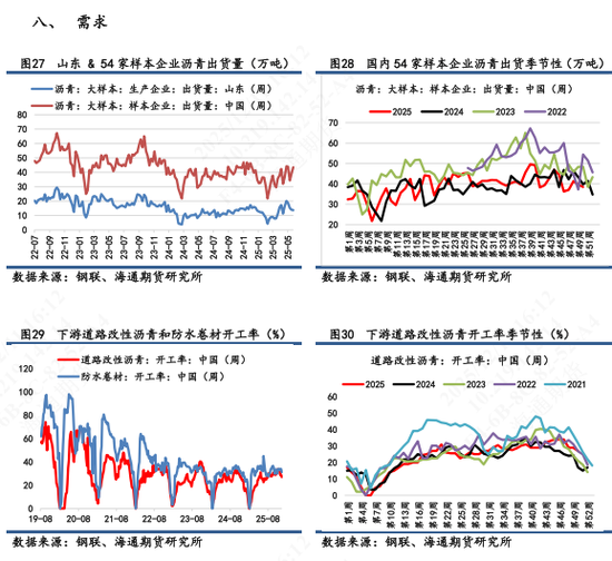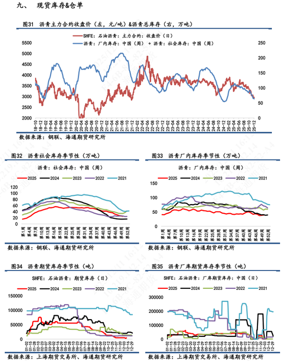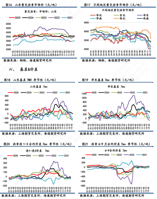 【2】现货市场:①山东重交沥青市场价为2930元/吨,环比持平,现货贴水期货,7天累计-1.0%。山东基差为-30元/吨,7天累计-20元/吨。②华东重交沥青市场价为3150元/吨,环比+0%。华东基差为+190元/吨,7天累计-20元/吨。
