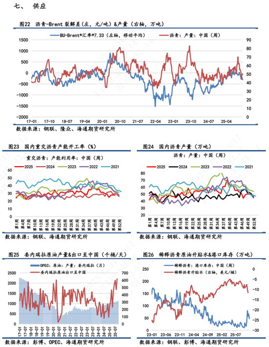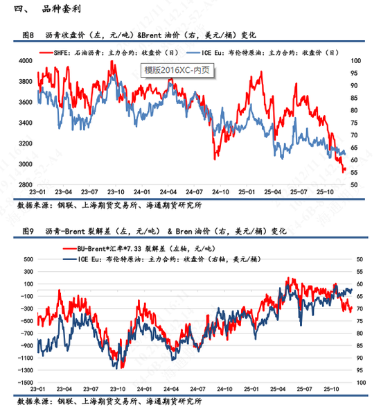 【4】基本面变化:12月10日当天美国总统特朗普宣布美军成功扣押了一艘受制裁的运输委内原油出口的VLCC油轮,此举标志着两国之间的紧张局势严重升级,也即意味着委内瑞拉每天近90万桶的原油出口将面临受阻。由于委内瑞拉重质原油提炼后的稀释沥青是国内山东沥青炼厂的偏好品种,因为其出口后续动荡将降低稀释沥青贴水幅度,影响国内沥青供应。不过目前来看,此轮消息更为是在情绪上给予沥青早上盘面一定的拉涨空间,但回归目前淡季基本面,仍是事件驱动型的情绪释放。最新的沥青产销周度数据表现一般,稀释沥青贴水虽有收窄,但贴水幅度仍旧有12美元/桶水平。市场冬储行情释放高价货源争夺平淡,市场倾向于低价货源竞争采购。现货市场跌破3000元/吨,市场对冬储价格产生看跌心理或观望心理。后期还是依旧持续关注冬储行情变化。本周暂且关注地缘层面俄乌相互能源设施袭击及南美委内瑞拉风险等因素对油价造成的市场扰动。
