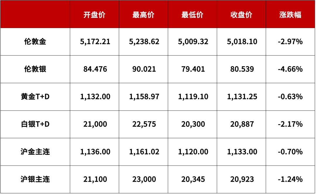 上周,现货黄金开盘在5172.21美元/盎司,最高触及5238.62美元/盎司。周五现货黄金收盘报5018.10元/盎司,周跌幅-2.97%。上周现货白银开盘在84.476美元/盎司,最高触及90.021美元/盎司,周五收盘80.539美元/盎司,周跌幅-4.66%。上周,受伊朗局势持续紧张影响,油价震荡走高,持续的高油价一方面大幅提升通胀预期,带动全球利率飙升,另一方面流动性紧缩对风险资产起到压制,贵金属市场显著承压。周三公布的美国2月CPI数据总体符合预期,但3月以来的高油价预计在后续数据中逐渐体现。周五公布的美国1月JOLTS数据超预期,显示就业市场较为平稳,美联储降息预期下行进一步压制贵金属价格,国际金价周线收于5000美元/盎司左右,国际银价收于80.5美元/盎司左右。