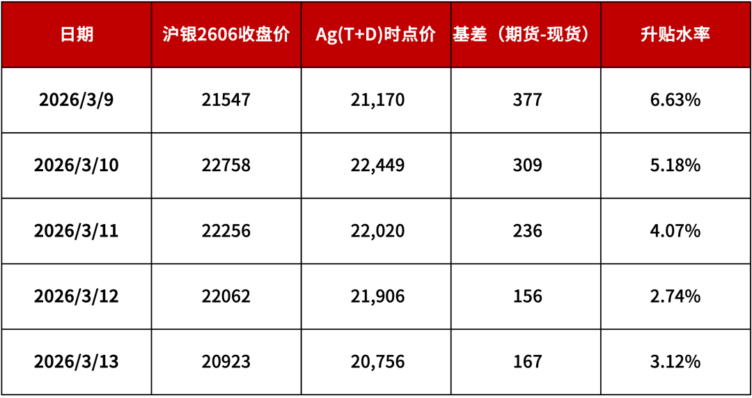 上周,白银期现基差震荡下行,最高触及377元/千克,收盘报167元/千克。在低库存、期货贴水背景下,建议投资者审慎参与。