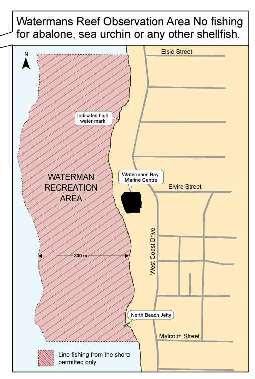 这个区域包绕着在沃特曼(Watermans)的西澳州旧海洋研究实验室,幅员从Elsie Steet北段延伸到Malcolm Street南段,顺高水位线向海延伸 300 米(海滩)。该区域内所有珊瑚礁生物均受保护,不得带离任何物种,包括鲍鱼、任何其他贝类、海胆、螃蟹、岩龙虾和章鱼。