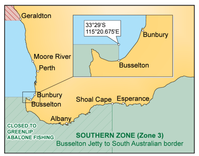 2.南区(3 区)巴瑟尔顿码头(Busselton Jetty)至南澳州边界为南区 (Southern Zone)。