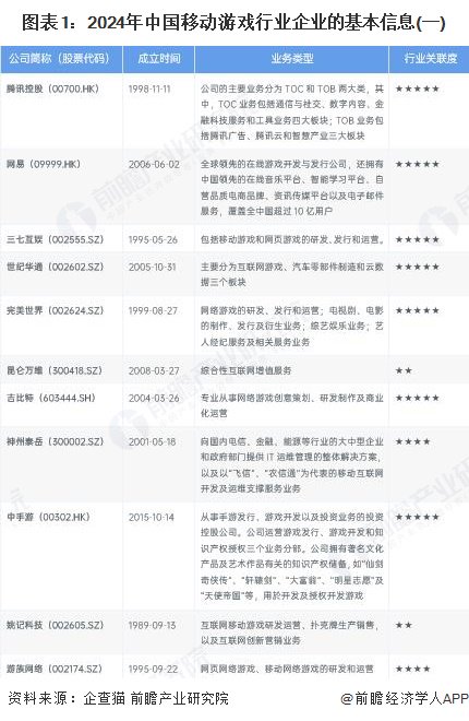 目前,我国移动游戏行业的上市企业主要包括:腾讯控股(00700.HK);网易(09999.HK);哔哩哔哩(09626.HK);友谊时光(06820.HK);中手游(00302.HK);游族网络(002174.SZ);天娱数科(002354.SZ);凯撒文化(002425.SZ)等。